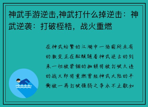 秦殇是一款以秦朝为背景的单机游戏,玩家扮演秦朝的将领,通过战斗、建设和外交等手段,逐渐统一天下。本文将详细介绍秦殇游戏的操作方法,包括游戏界面、角色操作、战斗技巧、建设与管理以及外交策略等方面。九游会老哥俱乐部 一、游戏界面 秦殇游戏的界面设计简洁明了,主要分为地图界面、任务界面、角色界...